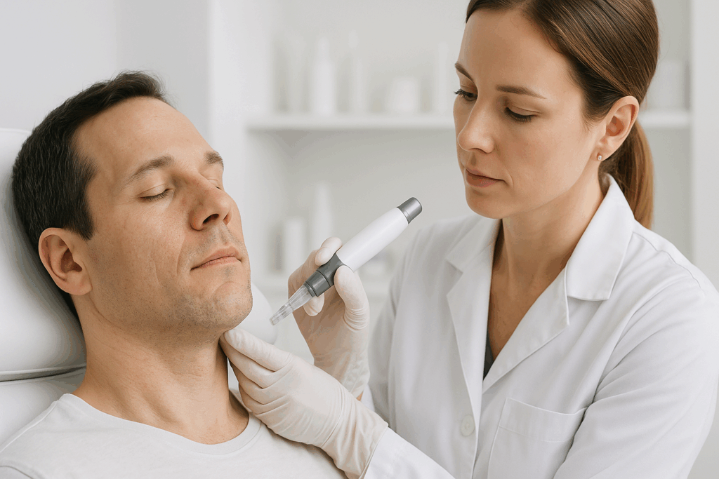 For best results, we usually recommend a series of 3–6 treatments spaced about 4–6 weeks apart. Your dermatologist at AverageDerm will create a plan tailored to your skin’s needs.